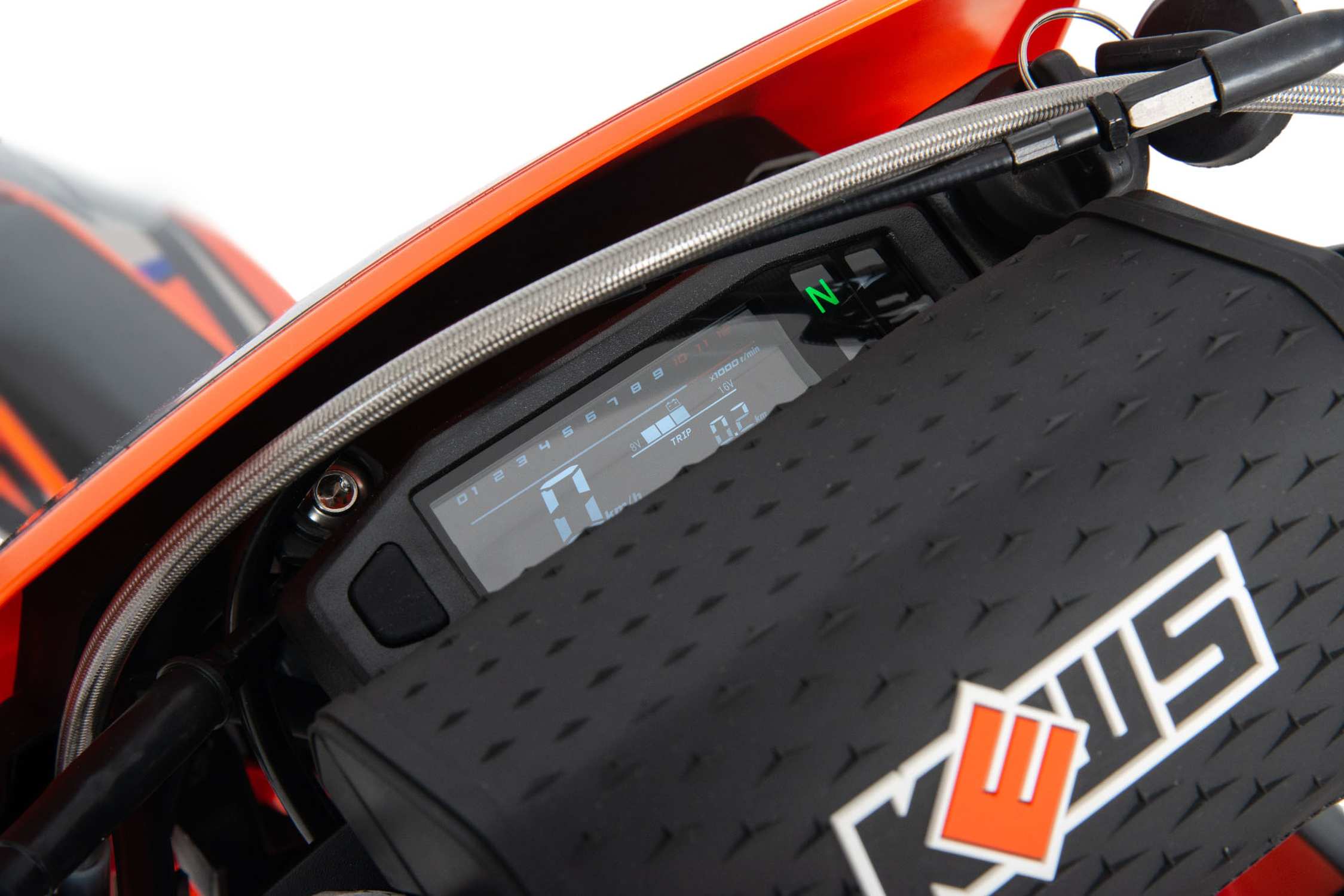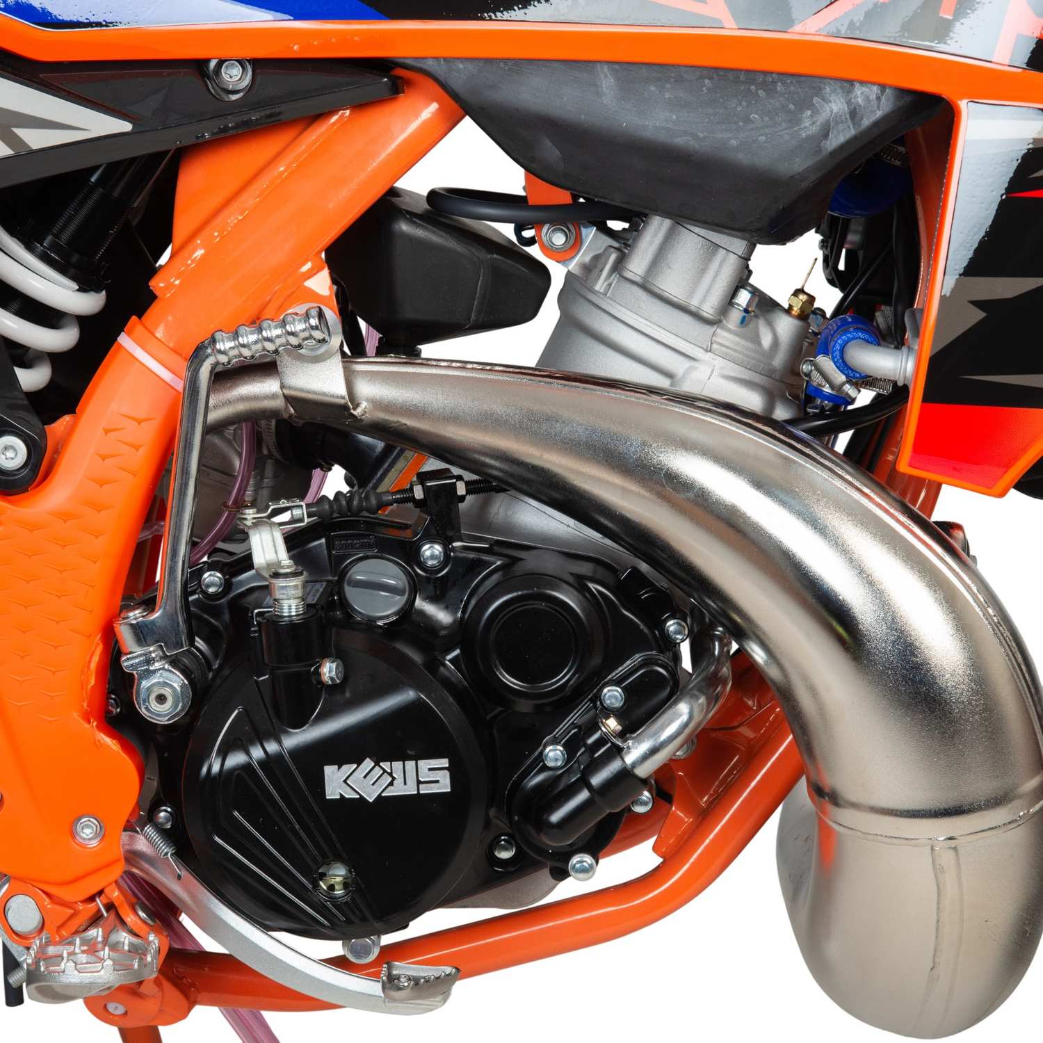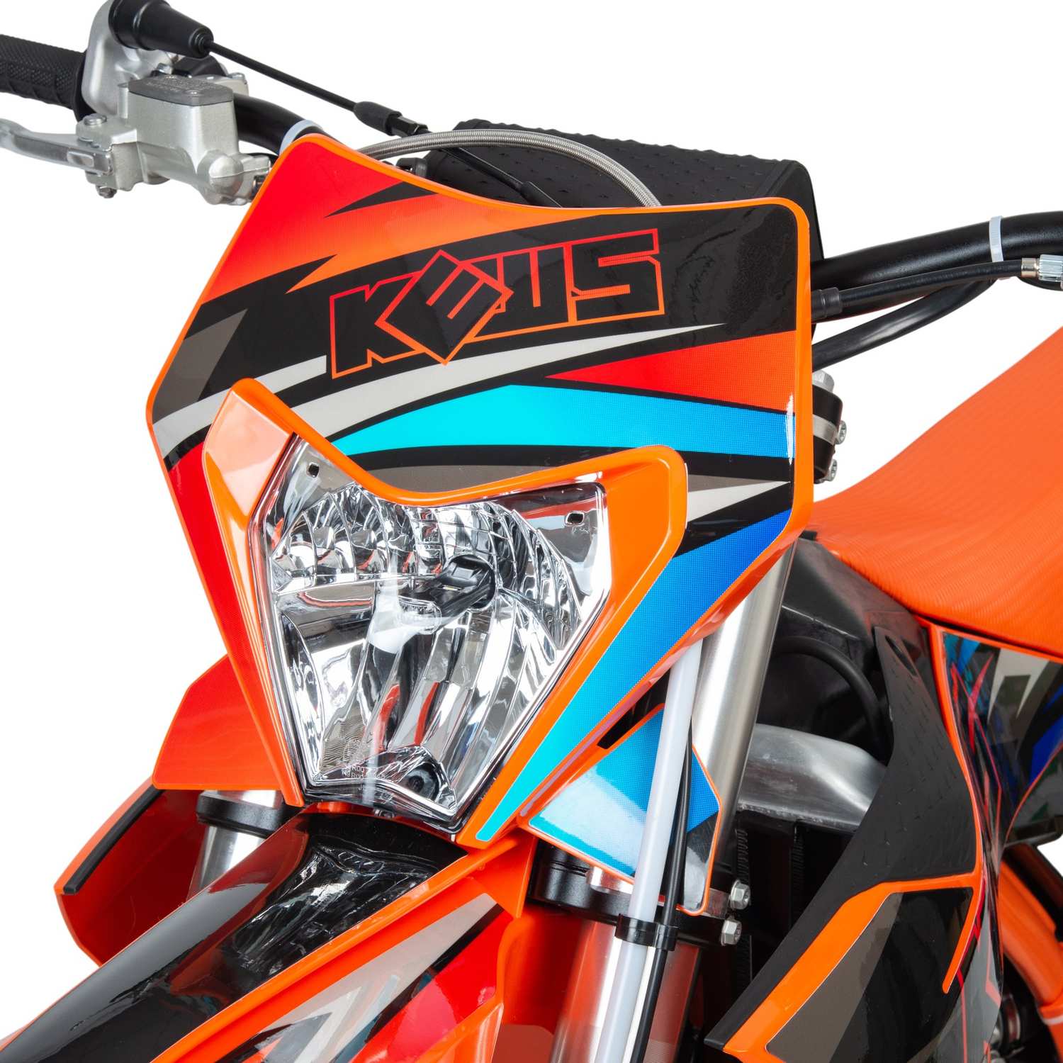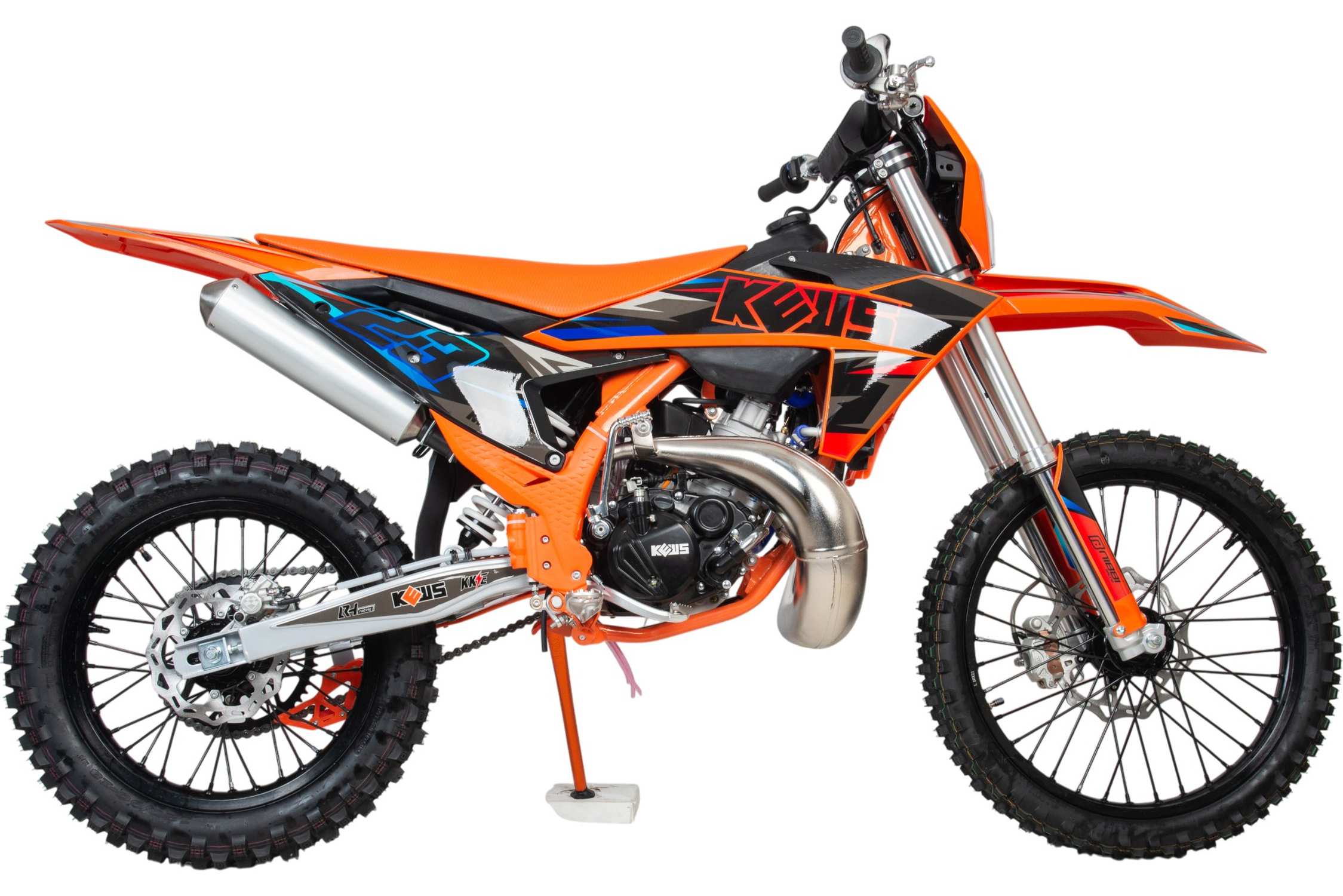 Топовый мотоцикл выглядит соответствующе — стильно и солидно. Без лишнего пафоса, но с уверенностью в собственном превосходстве над аналогами. Как и другие модели Kews K23 MT (250) 2-T покрыт комбинированным пластиком, который не ломается при сгибании. Все стыки идеально подогнаны, наклейки ровные. Кроссовый мотоцикл доступен в оранжевом цвете — внешний вид кросса подчёркивает несгибаемый характер и нацеленность на бескомпромиссную спортивную борьбу.