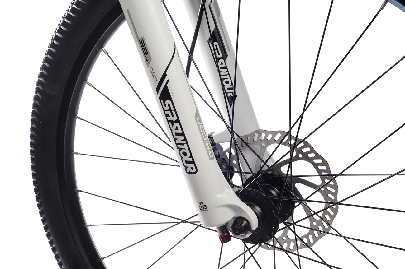 Воздушная вилка SUNTOUR SR-RAIDON LO-R , суперлегкие обода ALEX ACE17, трансмиссия от Shimano, резина KENDA 26*2.1 K1047.
