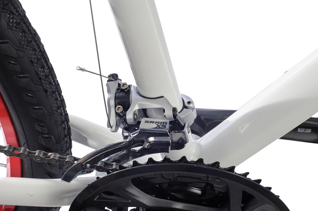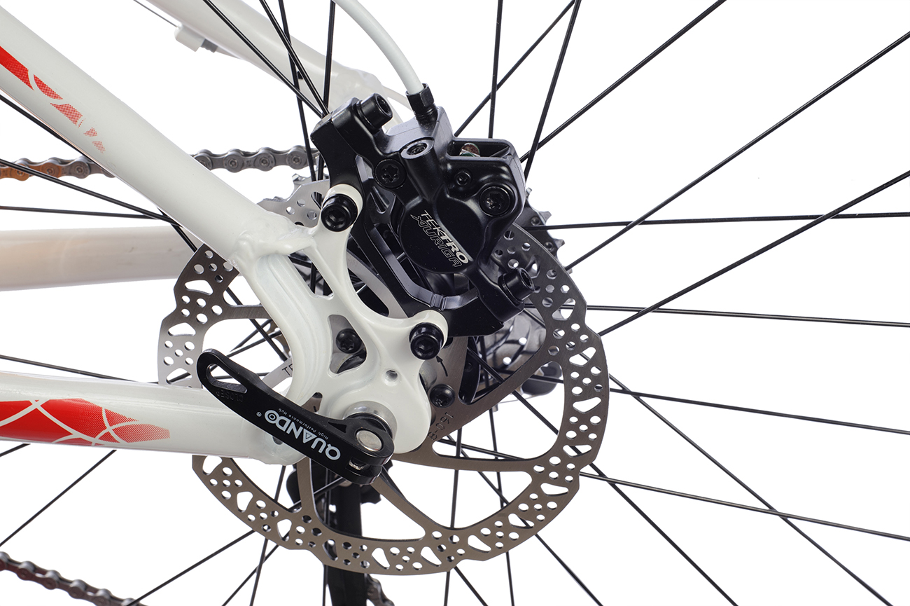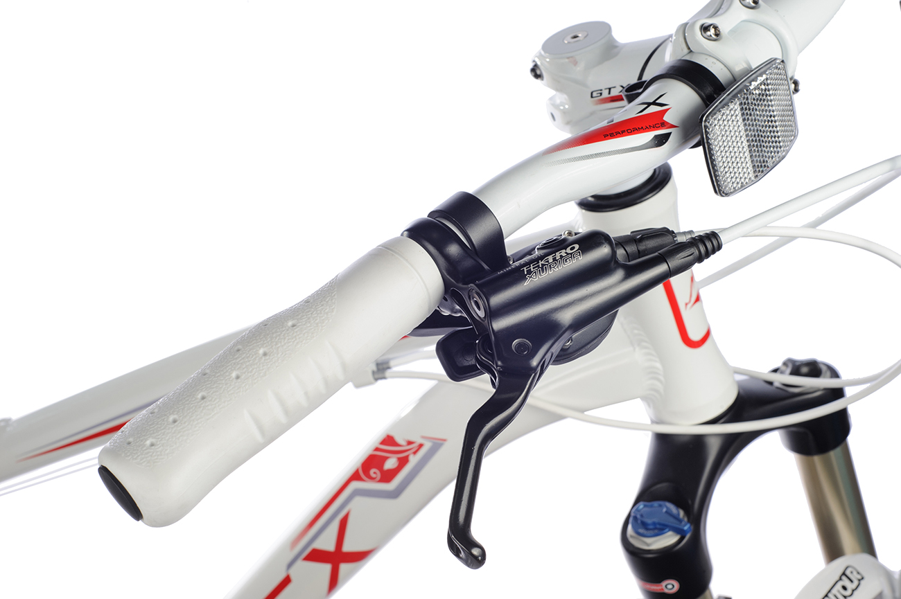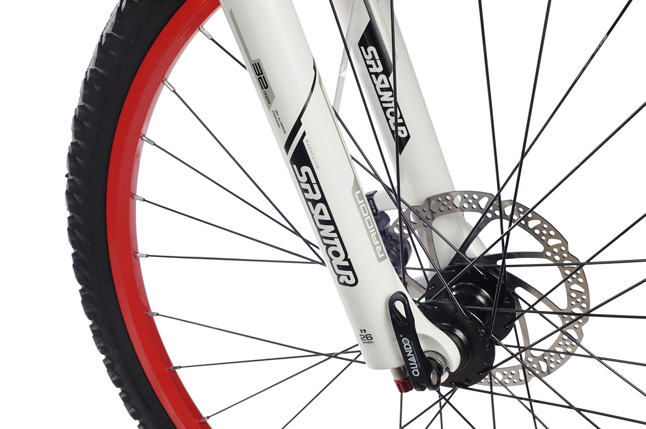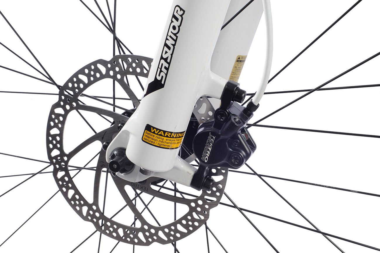 Надежные гидравлические дисковые тормоза Tektro, мягкое сиденье, а так же легкая алюминиевая вилка Suntour RAIDON-LO-R с ходом 100 мм, функцией блокировки и регулировки.