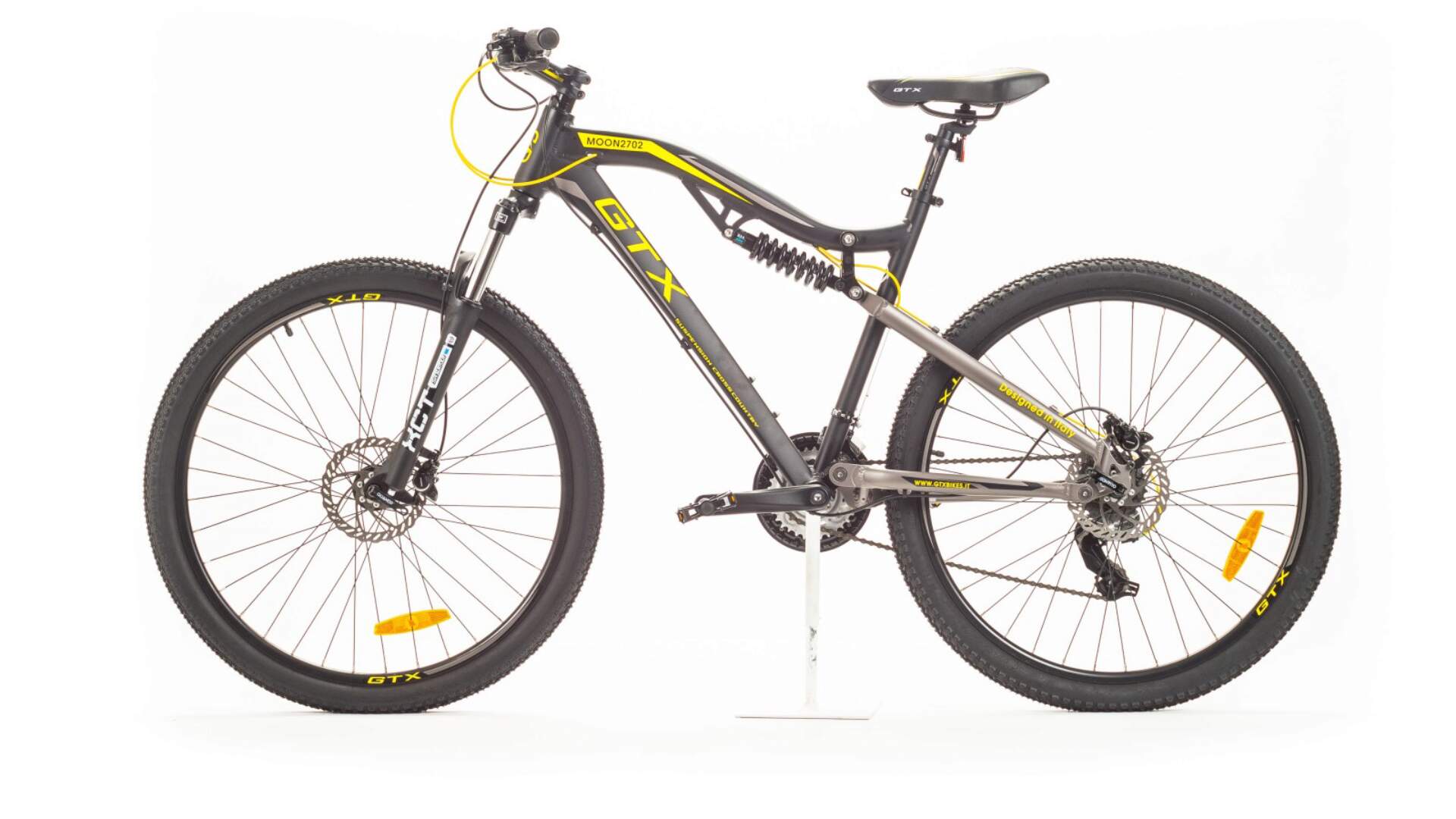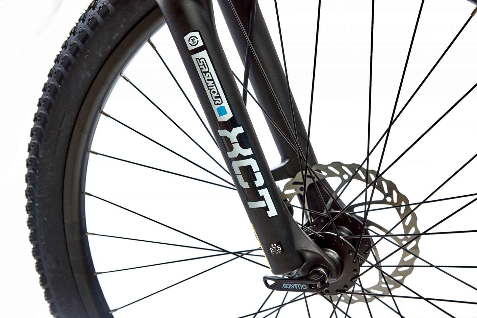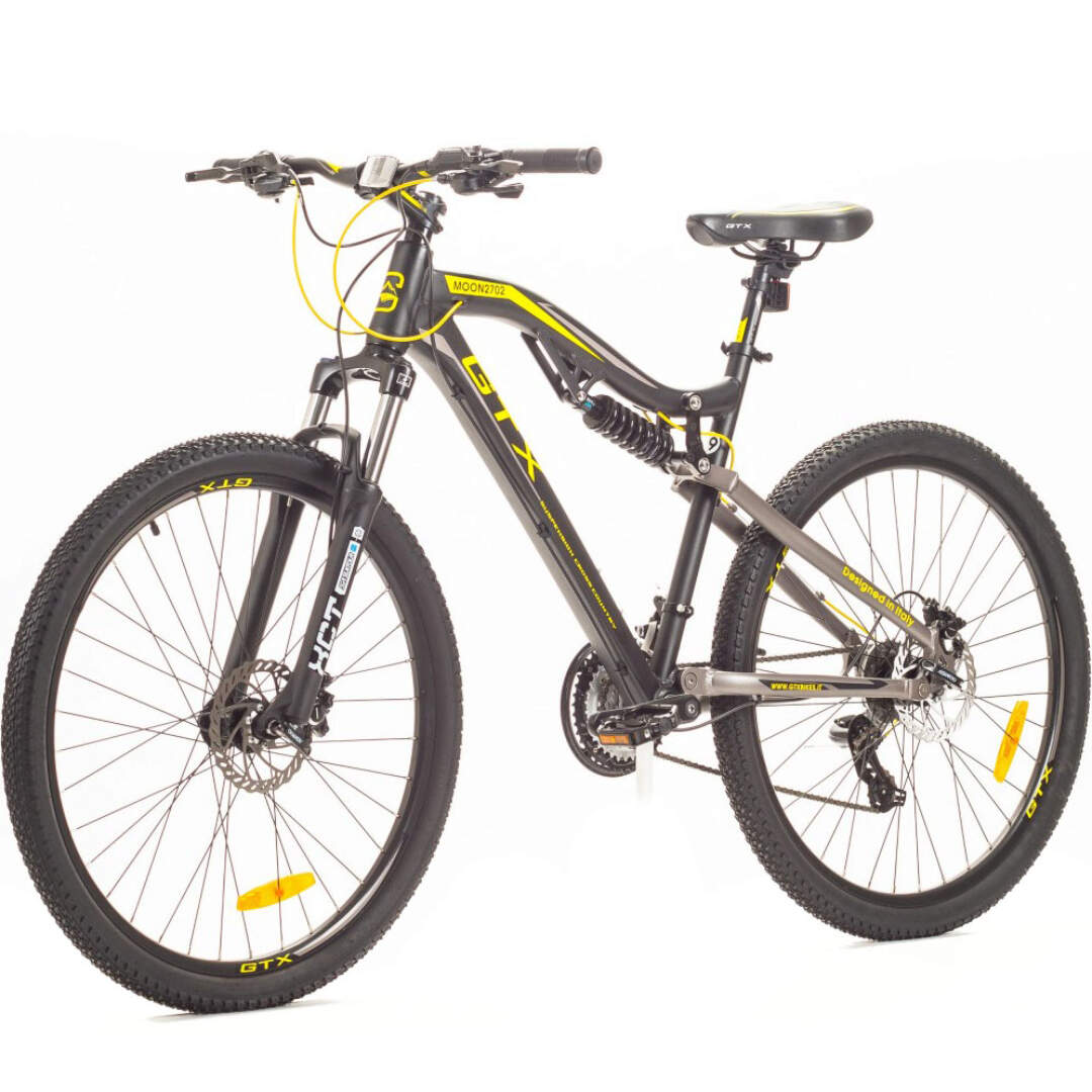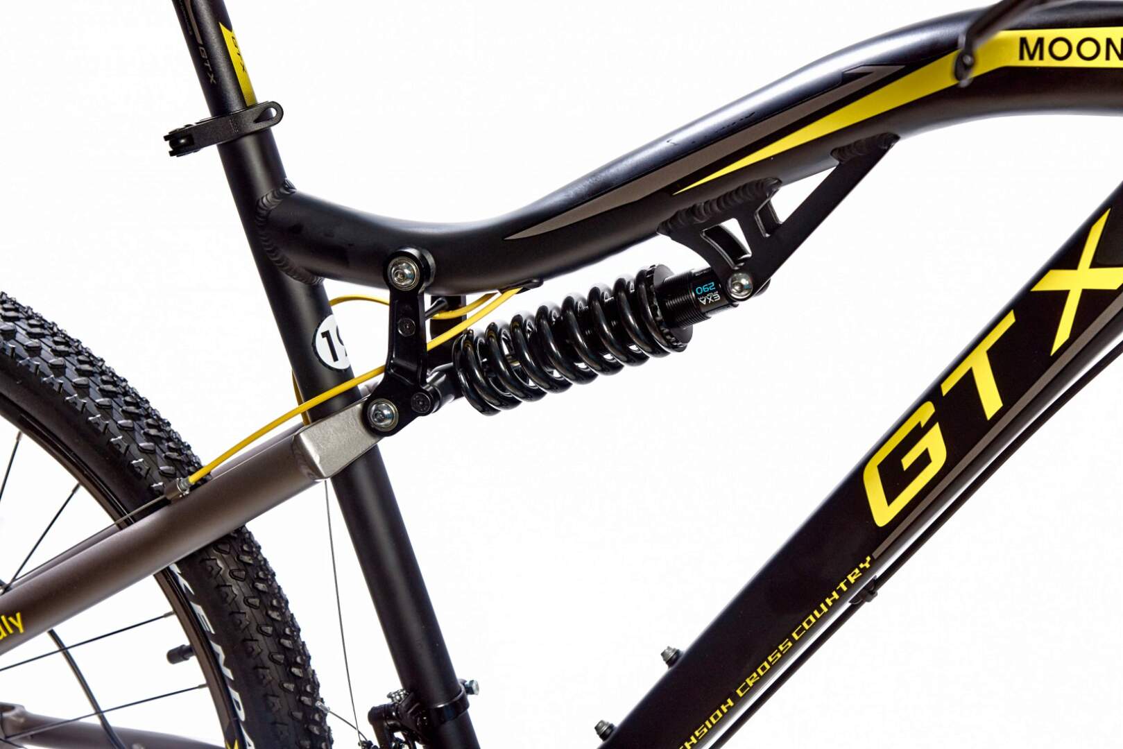 Велосипед оснащен вилкой SUNTOUR XCT, задним воздушным амортизатором и двойными ободами GTX Race.