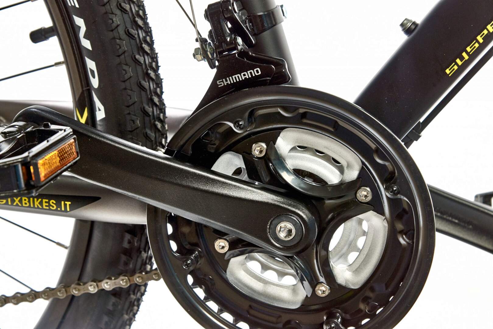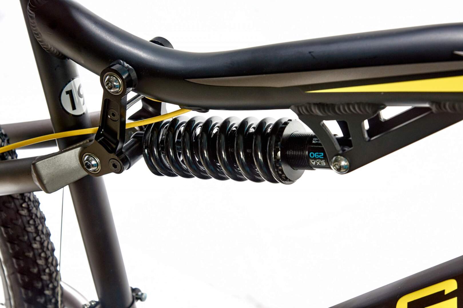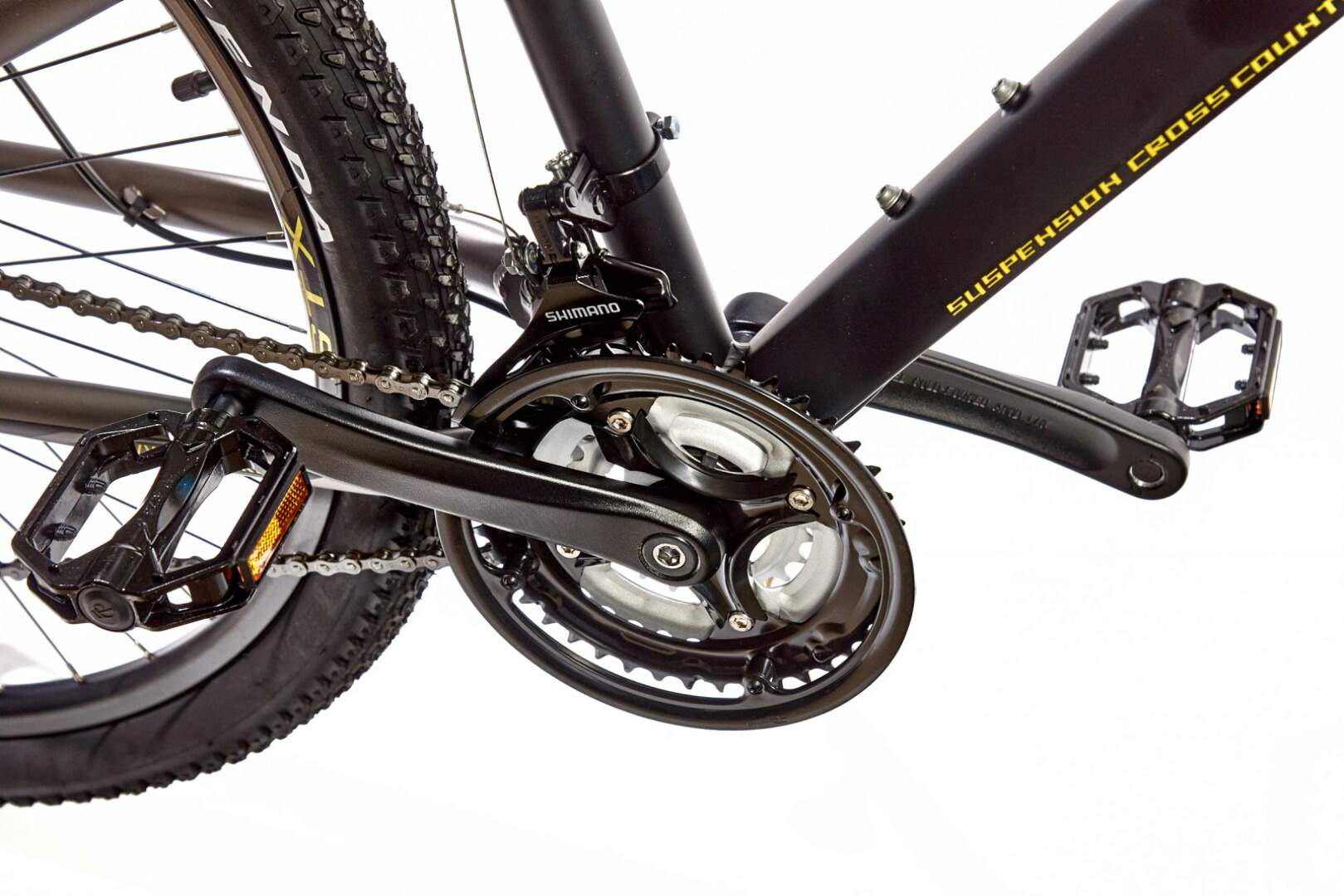 Велосипед оснащен вилкой SUNTOUR XCT, задним воздушным амортизатором и двойными ободами GTX Race.