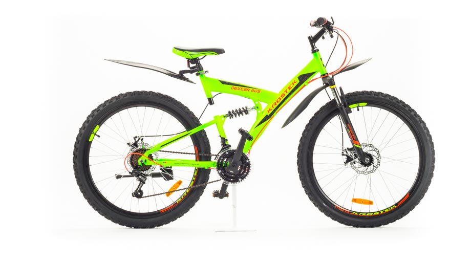 KROSTEK DEXTER 605- крепкий велосипед с задним амортизатором. Задняя подвеска позволяет смягчить самые огромные неровности на дороге. Модель укомплектована дисковыми тормозами, двойными ободами, трансмиссией Shimano.