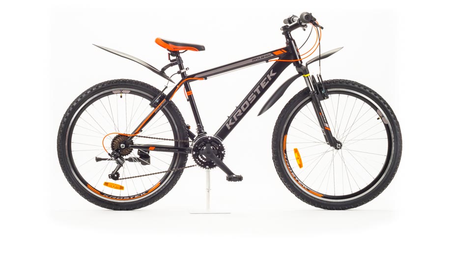 KROSTEK IMPULSE 600 горный велосипед с оборудованием начального класса Shimano. Технические особенности: прочная стальная рама, амортизационная вилка MODE 711B, двойные алюминиевые обода, надежные ободные тормоза. Подходит для езды по различным дорогам и пересеченной местности.